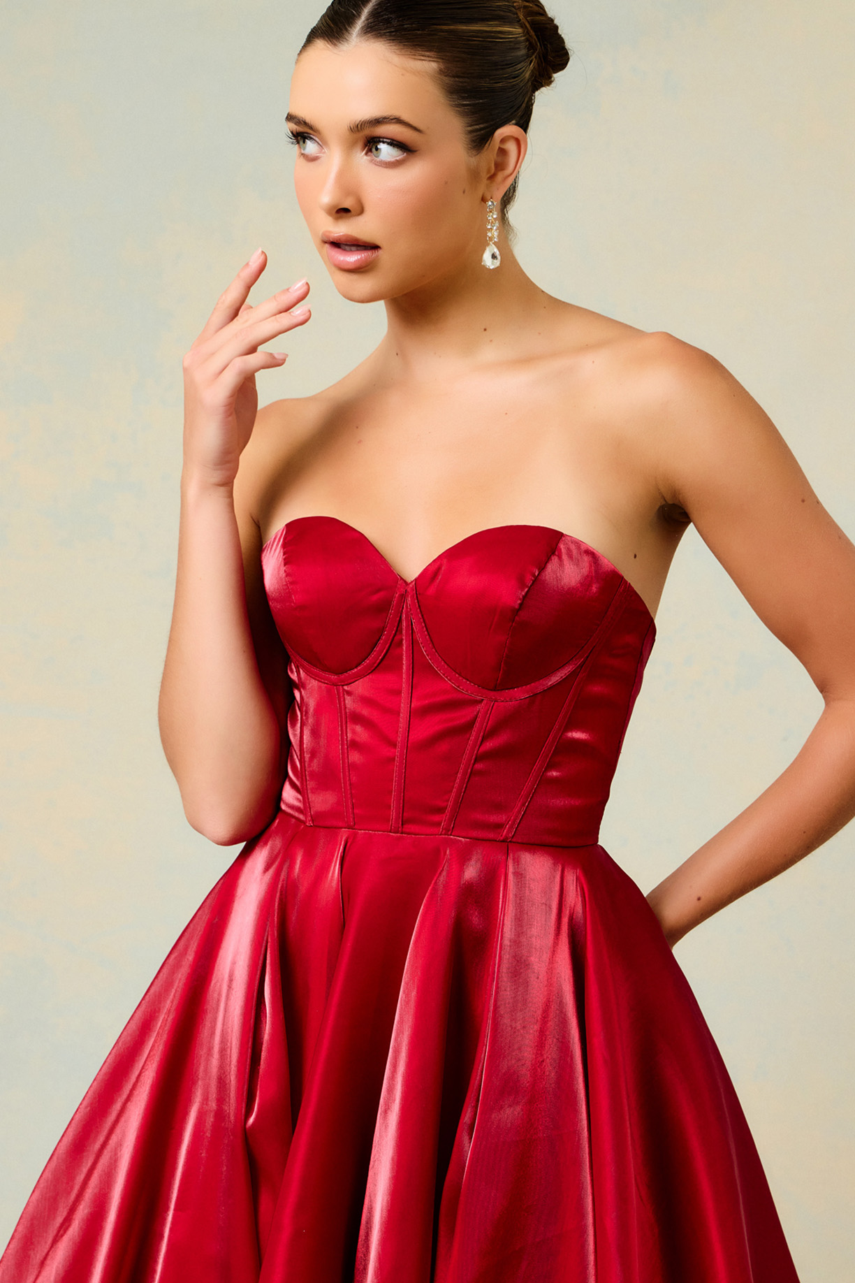 Vestido de fiesta tipo princesa strapless con escote corazón