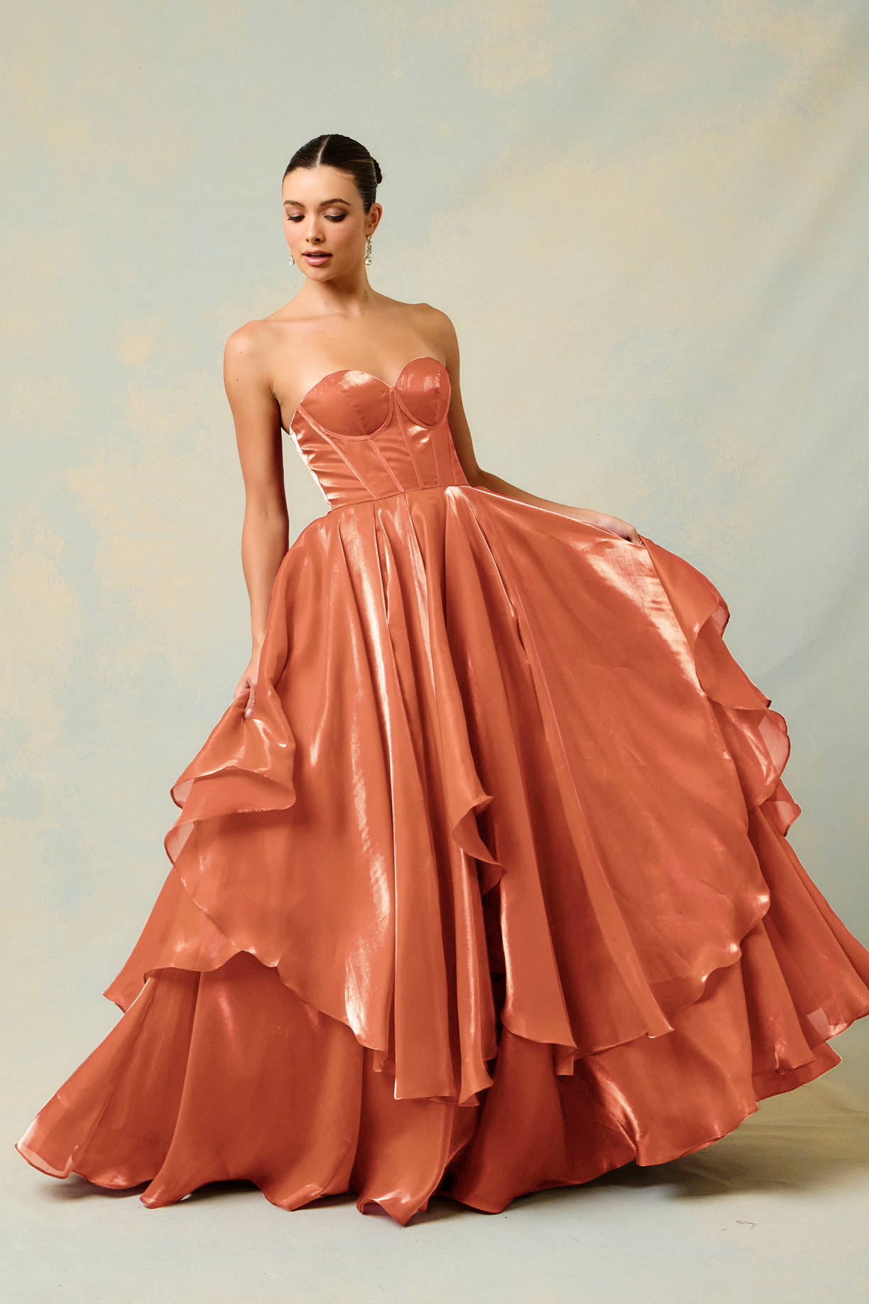 Vestido de fiesta tipo princesa strapless con escote corazón
